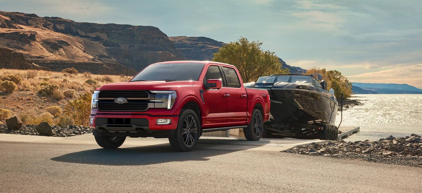 Higher trims offer advanced driver assistance features such as adaptive cruise control with stop-and-go, a 360-degree camera for a bird's-eye view to simplify parking, and upgraded active park assist. The F-150 also comes with trailer-specific safety options like trailer sway control and an integrated trailer brake controller, enhancing towing safety and confidence for drivers across the region.