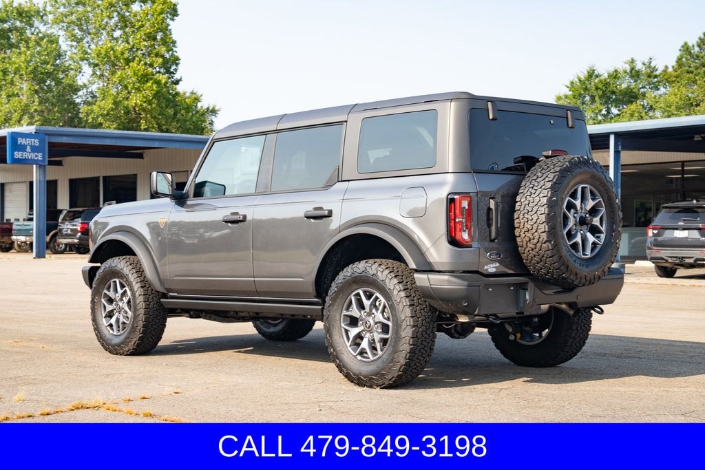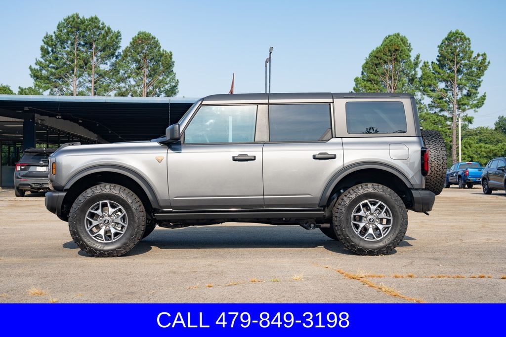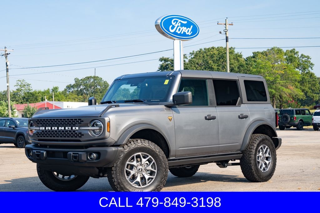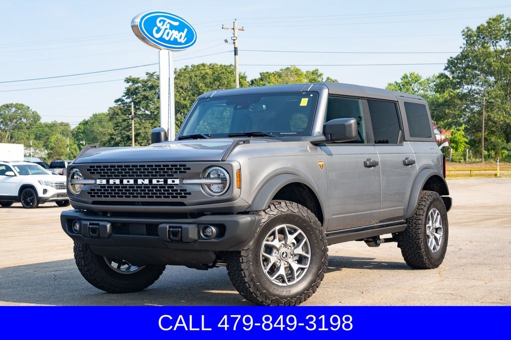 Gray Metallic 2025 Ford Bronco Badlands 4WD 10-Speed Automatic 2.7L EcoBoost V6 WE DELIVER!! FIRST 100 MILES FREE!, 4-Wheel Disc Brakes, 4.7 Axle Ratio, 7 Speakers, ABS brakes, Air Conditioning, Alloy wheels, AM/FM radio: SiriusXM with 360L, AM/FM Stereo, Auto High-beam Headlights, Auto-dimming Rear-View mirror, Brake assist, Carbonized Gray Molded-In-Color Hard Top, Compass, Connected Navigation, Delay-off headlights, Driver door bin, Driver vanity mirror, Dual front impact airbags, Dual front side impact airbags, Electronic Stability Control, Emergency communication system: 911 Assist, Equipment Group 332A Mid Package, Exterior Parking Camera Rear, Front anti-roll bar, Front Bucket Seats, Front Center Armrest, Front fog lights, Front License Plate Bracket, Front reading lights, Front wheel independent suspension, Fully automatic headlights, Heated door mirrors, Heated front seats, Heated steering wheel, Illuminated entry, Integrated roll-over protection, Leather Shift Knob, Low tire pressure warning, Marine Grade Vinyl Heated Bucket Seats, Occupant sensing airbag, Outside temperature display, Overhead airbag, Overhead console, Panic alarm, Passenger door bin, Passenger vanity mirror, Power door mirrors, Power steering, Power windows, Radio data system, Rear-Window Defroster & Washer, Remote keyless entry, Security system, SiriusXM w/360L, Speed control, Split folding rear seat, Steering wheel mounted audio controls, SYNC 4, Tachometer, Telescoping steering wheel, Tilt steering wheel, Traction control, Trip computer, Variably intermittent wipers, Voltmeter.