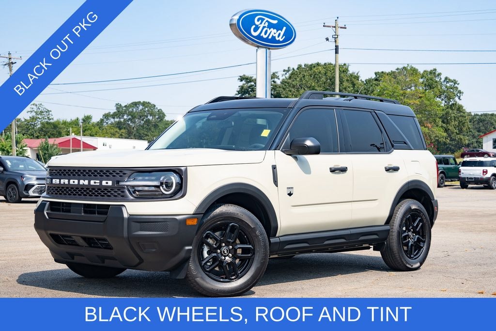 Sand 2025 Ford Bronco Sport Big Bend 4WD 8-Speed Automatic 1.5L EcoBoost BLACK ROOF, BLACK WHEELS, WINDOW TINT, WE DELIVER!! FIRST 100 MILES FREE!, 4-Wheel Disc Brakes, 6 Speakers, ABS brakes, Air Conditioning, Alloy wheels, AM/FM radio: SiriusXM, AM/FM Stereo, Auto High-beam Headlights, Automatic temperature control, Brake assist, Cloth w/Easy-to-Clean Front Bucket Seats, Compass, Delay-off headlights, Driver door bin, Driver vanity mirror, Dual front impact airbags, Dual front side impact airbags, Electronic Stability Control, Emergency communication system: SYNC 4 911 Assist, Four wheel independent suspension, Front anti-roll bar, Front Bucket Seats, Front Center Armrest, Front reading lights, Fully automatic headlights, Heated door mirrors, Illuminated entry, Knee airbag, Low tire pressure warning, Occupant sensing airbag, Outside temperature display, Overhead airbag, Overhead console, Panic alarm, Passenger door bin, Passenger vanity mirror, Power door mirrors, Power steering, Power windows, Radio data system, Rear anti-roll bar, Rear Parking Sensors, Rear reading lights, Rear seat center armrest, Rear window defroster, Rear window wiper, Remote keyless entry, Security system, SiriusXM, Speed control, Speed-sensing steering, Speed-Sensitive Wipers, Split folding rear seat, Steering wheel mounted audio controls, SYNC 4 w/Enhanced Voice Recognition, Tachometer, Telescoping steering wheel, Tilt steering wheel, Traction control, Trip computer, Variably intermittent wipers, Wheels: 17" Carbonized Gray-Painted Aluminum.