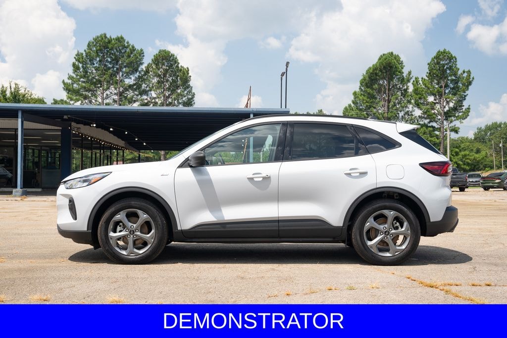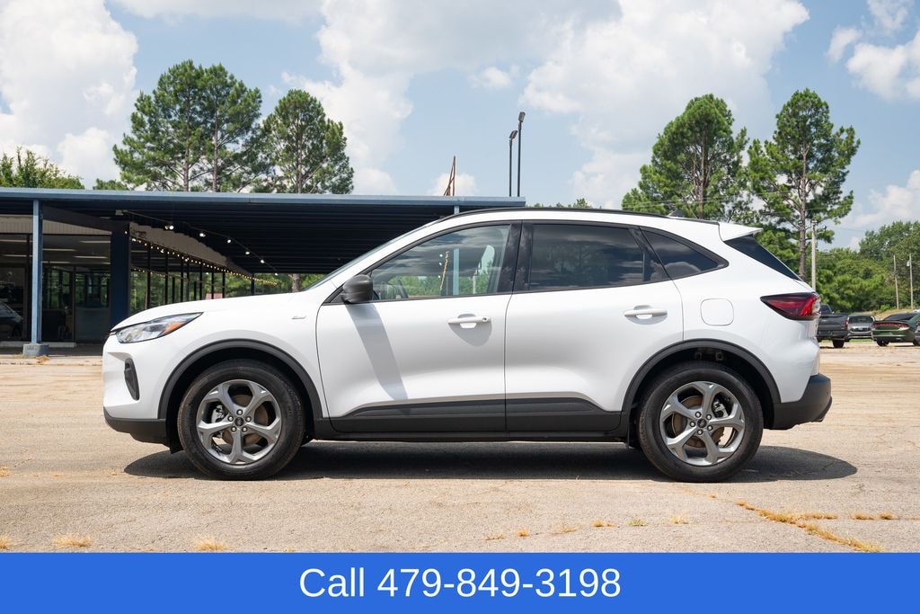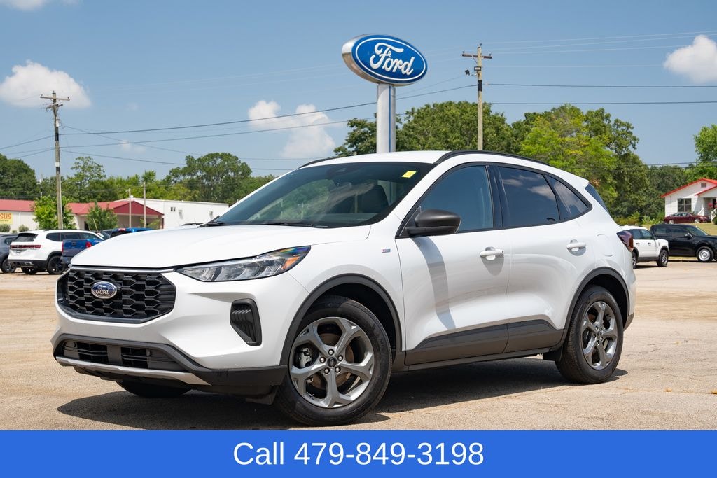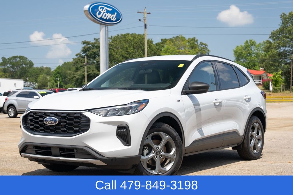 Silver Metallic 2025 Ford Escape ST-Line FWD eCVT 2.5L iVCT 2.5L iVCT, eCVT, 2.91 Axle Ratio, 4-Wheel Disc Brakes, 6 Speakers, ABS brakes, Adaptive Cruise Control w/Stop-and-Go, Air Conditioning, Alloy wheels, AM/FM radio: SiriusXM, AM/FM Stereo, Auto High-beam Headlights, Automatic temperature control, Brake assist, Bumpers: body-color, Compass, Connected Navigation, Delay-off headlights, Driver door bin, Driver vanity mirror, Dual front impact airbags, Dual front side impact airbags, Electronic Fuel Door Release, Electronic Stability Control, Emergency communication system: SYNC 4 911 Assist, Equipment Group 301A, Ford Co-Pilot360 Assist+, FordPass Connect, Four wheel independent suspension, Front anti-roll bar, Front Bucket Seats, Front Center Armrest, Front dual zone A/C, Front reading lights, Fully automatic headlights, Illuminated entry, Intersection Assist, Knee airbag, Low tire pressure warning, Neutral Towing Capability, Occupant sensing airbag, Outside temperature display, Overhead airbag, Overhead console, Panic alarm, Passenger door bin, Passenger vanity mirror, Pedestrian Alert Sounder, Power door mirrors, Power driver seat, Power Liftgate, Power steering, Power windows, Predictive Speed Assist, Radio data system, Rear anti-roll bar, Rear Parking Sensor, Rear reading lights, Rear seat center armrest, Rear window defroster, Rear window wiper, Rear-View Camera, Remote keyless entry, Speed control, Speed-sensing steering, Speed-Sensitive Wipers, Split folding rear seat, Spoiler, Sport steering wheel, Steering wheel mounted audio controls, SYNC 4 w/Enhanced Voice Recognition, Tachometer, Tech Pack #1, Telescoping steering wheel, Tilt steering wheel, Traction control, Trip computer, Variably intermittent wipers, Vinyl/Cloth Front Sport Contour Bucket Seats, Wheels: 18" Rock Metallic Painted Aluminum.