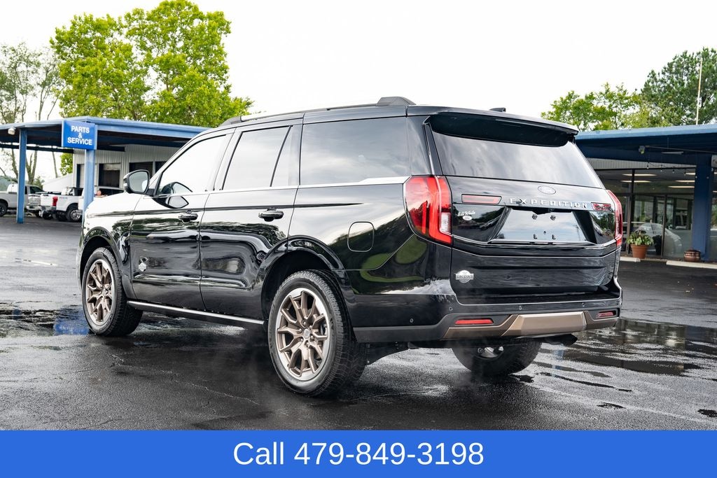 Agate Black Metallic 2025 Ford Expedition King Ranch 4WD 10-Speed Automatic EcoBoost 3.5L V6 GTDi DOHC 24V Twin Turbocharged WE DELIVER! FIRST 100 MILES FREE!, 4WD, 22 Speakers, 3.73 Axle Ratio, 3rd row seats: split-bench, 4-Wheel Disc Brakes, ABS brakes, Adaptive suspension, Adjustable pedals, Air Conditioning, Alloy wheels, AM/FM radio: SiriusXM with 360L, Apple CarPlay/Android Auto, Auto High-beam Headlights, Auto-dimming door mirrors, Auto-dimming Rear-View mirror, Automatic temperature control, BlueCruise Equipped (1-Year Plan), Brake assist, Bumpers: body-color, Compass, Delay-off headlights, Driver door bin, Driver vanity mirror, Dual front impact airbags, Dual front side impact airbags, Electronic Stability Control, Emergency communication system: 911 Assist, Exterior Parking Camera Rear, Four wheel independent suspension, Front anti-roll bar, Front Bucket Seats, Front Center Armrest, Front dual zone A/C, Front reading lights, Fully automatic headlights, Garage door transmitter, Genuine wood dashboard insert, Genuine wood door panel insert, Heated door mirrors, Heated front seats, Heated rear seats, Heated steering wheel, Heated/Vent Prem Del Rio Lthr Fr Captain's Chairs, Illuminated entry, Leather steering wheel, Low tire pressure warning, Memory seat, Navigation System, Occupant sensing airbag, Outside temperature display, Overhead airbag, Overhead console, Panic alarm, Passenger door bin, Passenger vanity mirror, Pedal memory, Power door mirrors, Power driver seat, Power moonroof: Vista Roof, Power passenger seat, Power steering, Power windows, Radio data system, Radio: B&O Unleashed Sound System by Bang & Olufsen, Rain sensing wipers, Rear air conditioning, Rear anti-roll bar, Rear reading lights, Rear window defroster, Rear window wiper, Reclining 3rd row seat, Remote keyless entry, Security system, SiriusXM w/360L, Speed control, Speed-sensing steering, Speed-Sensitive Wipers, Split folding rear seat, Spoiler, Steering wheel memory, Steering wheel mounted audio controls, Tachometer, Telescoping steering wheel, Tilt steering wheel, Traction control, Trip computer, Turn signal indicator mirrors, Variably intermittent wipers, Ventilated front seats, Voltmeter, Wheels: 22" Sinister Brown w/Diamond Cut Face Alum.