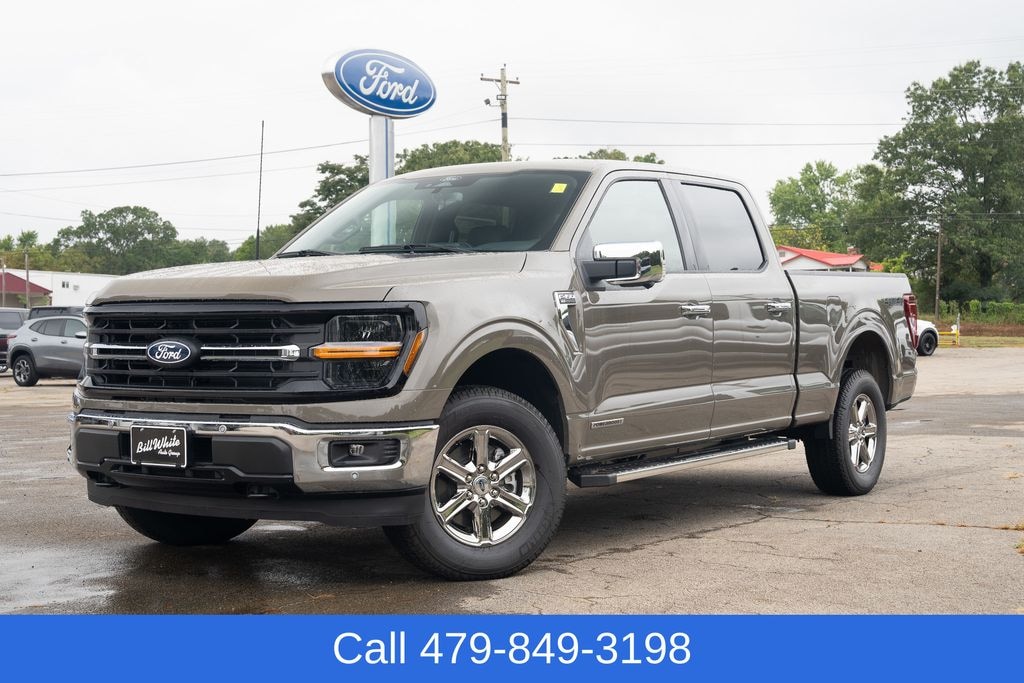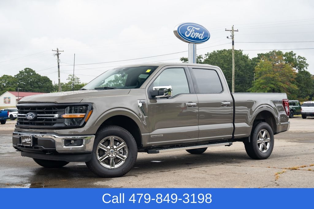 Gray 2025 Ford F-150 XLT 4WD 10-Speed Automatic 3.5L PowerBoost Full-Hybrid V6 WE DELIVER!! FIRST 100 MILES FREE!, 3.5L PowerBoost Full-Hybrid V6, 4WD, 360 Degree Camera, 4-Wheel Disc Brakes, 400W Cab & Bed Outlets, 6 Speakers, 6" Angular Bright Anodized Step Bar, ABS brakes, Adaptive Cruise Control w/Stop & Go, Air Conditioning, Alloy wheels, AM/FM radio: SiriusXM with 360L, Auto High-beam Headlights, Auto-Dimming Rear-View Mirror, Black Painted Grille w/Chrome Center Bar, Brake assist, Bumpers: chrome, Chrome Door & Tailgate Handles, Chrome Single-Tip Exhaust, Chrome wheels, Cloth 40/20/40 Front Seat, Cloth 40/Console/40 Front Seats, Compass, Connected Navigation, Console Worksurface, Delay-off headlights, Driver door bin, Driver State Detection, Driver vanity mirror, Dual front impact airbags, Dual front side impact airbags, Dual-Zone Electronic Automatic Temperature Control, Electronic Locking w/3.73 Axle Ratio, Electronic Stability Control, Emergency communication system: SYNC 4 911 Assist, Equipment Group 302A Mid, Evasive Steering Assist, Ford Co-Pilot360 Assist 2.0, Front anti-roll bar, Front Center Armrest, Front fog lights, Front License Plate Bracket, Front Parking Sensors, Front reading lights, Front wheel independent suspension, Fully automatic headlights, Heated door mirrors, Heated Front Seats, Illuminated entry, Intelligent Access w/Push Button Start, Low tire pressure warning, Mobile Office Package, Occupant sensing airbag, Outside temperature display, Overhead airbag, Overhead console, Panic alarm, Partitioned Lockable Rear Storage, Passenger door bin, Passenger vanity mirror, Power door mirrors, Power Glass Heated Sideview Mirrors, Power steering, Power windows, Power-Sliding Rear Window, Radio data system, Radio: AM/FM Stereo w/SiriusXM 360L, Rear Parking Sensors, Rear reading lights, Rear step bumper, Rear window defroster, Remote keyless entry, Remote Start System w/Remote Tailgate Release, Security system, Speed control, Split folding rear seat, Steering wheel mounted audio controls, SYNC 4 w/Enhanced Voice Recognition, Tachometer, Telescoping steering wheel, Tilt steering wheel, Towing Technology, Traction control, Trip computer, Variably intermittent wipers, Voltmeter, Wheels: 18" Chrome-Like PVD, Wrapped Steering Wheel.