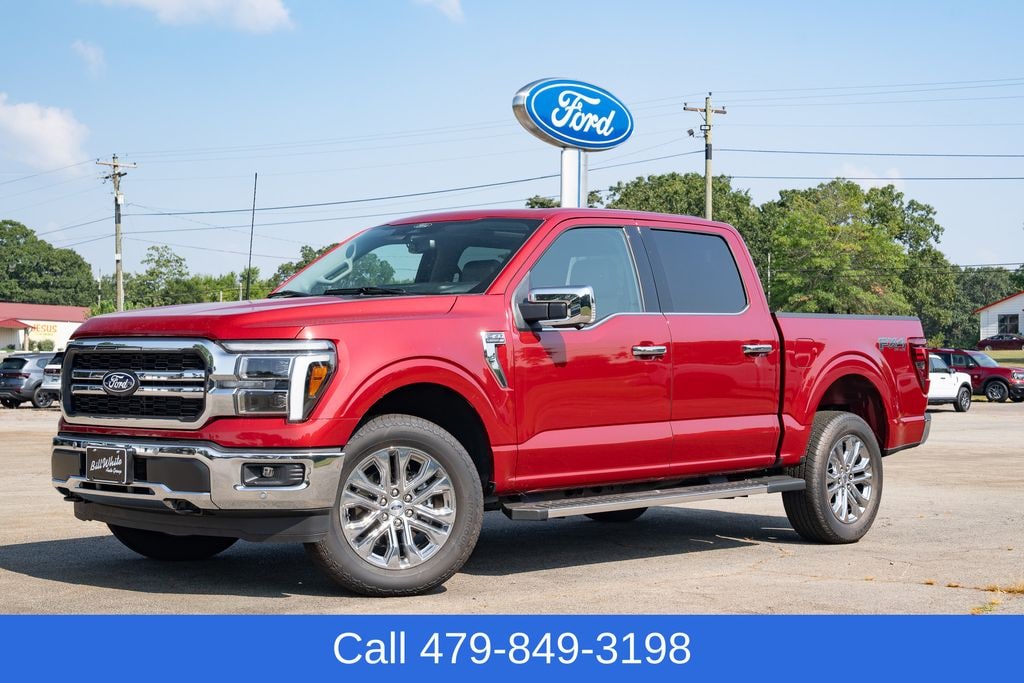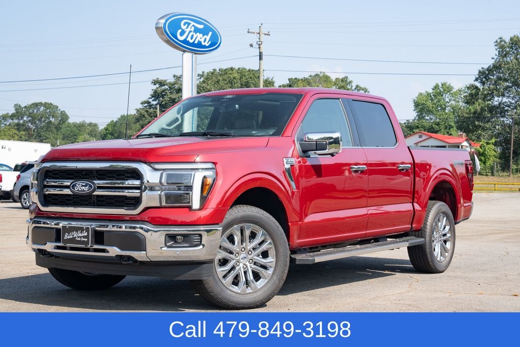 Red Metallic 2025 Ford F-150 Lariat TREMOR 4WD 10-Speed Automatic 3.5L V6 EcoBoost WE DELIVER! FIRST 100 MILES FREE!!, 4WD, 2nd Row Heated Seats, 4 Pickup Box Tie-Down Plates, 4-Wheel Disc Brakes, 4x4 FX4 Off-Road Bodyside Decal, 6" Extended Running Boards, 8 Speakers, ABS brakes, ActiveX Trimmed Bucket Seats, Adjustable pedals, Air Conditioning, Alloy wheels, AM/FM radio: SiriusXM with 360L, Ambient Lighting - Ice Blue Color Only, Auto High-beam Headlights, Auto-dimming door mirrors, Auto-dimming Rear-View mirror, Automatic temperature control, Bed Utility Package, Brake assist, Bumpers: chrome, Chrome wheels, Compass, Console Worksurface, Delay-off headlights, Driver door bin, Driver vanity mirror, Dual front impact airbags, Dual front side impact airbags, Electronic Locking w/3.31 Axle Ratio, Electronic Stability Control, Emergency communication system: SYNC 4 911 Assist, Equipment Group 502A High, Front anti-roll bar, Front Bucket Seats, Front Center Armrest, Front dual zone A/C, Front fog lights, Front License Plate Bracket, Front reading lights, Front wheel independent suspension, Fully automatic headlights, FX4 Off-Road Package, Garage door transmitter, Heads-Up Display, Heated door mirrors, Heated front seats, Heated steering wheel, Hill Descent Control, Illuminated Driver & Passenger Visors, Illuminated entry, Integrated Trailer Brake Controller, LED Box Lighting, Low tire pressure warning, Memory seat, Mobile Office Package, Monotube Rear Shocks, Navigation system: Connected Navigation, Occupant sensing airbag, Off-Road Tuned Front Shock Absorbers, Outside temperature display, Overhead airbag, Overhead console, Panic alarm, Partitioned Lockable Rear Storage, Passenger door bin, Passenger vanity mirror, Pedal memory, Power door mirrors, Power driver seat, Power passenger seat, Power steering, Power Tailgate, Power windows, Power-Sliding Rear Window, Pro Access Tailgate, Radio data system, Radio: B&O Sound System by Bang & Olufsen, Radio: B&O Unleashed Sound System by Bang & Olufsen, Rain sensing wipers, Rear reading lights, Rear seat center armrest, Rear step bumper, Rear window defroster, Remote keyless entry, Rock Crawl Mode, Security system, Speed control, Split folding rear seat, Steering wheel mounted audio controls, SYNC 4 w/Enhanced Voice Recognition, Tachometer, Telescoping steering wheel, Tilt steering wheel, Tow/Haul Package, Traction control, Tray Style Floor Liner w/o Carpet Mats, Trip computer, Turn signal indicator mirrors, Twin Panel Moonroof, Variably intermittent wipers, Ventilated front seats, Voltmeter, Wheels: 18" Chrome-Like PVD, Wheels: 20" Chrome-Like PVD, Wireless Charging.