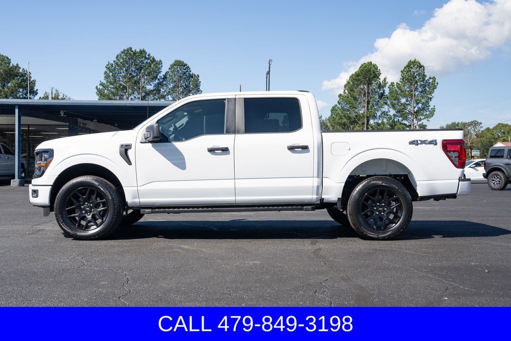 White 2025 Ford F-150 STX 4WD 10-Speed Automatic 2.7L V6 EcoBoost WE DELIVER! FIRST 100 MILES FREE!!, 4WD, 3.55 Axle Ratio, 4-Wheel Disc Brakes, 6 Speakers, ABS brakes, Air Conditioning, Alloy wheels, AM/FM radio: SiriusXM with 360L, Auto High-beam Headlights, Brake assist, Bumpers: body-color, Compass, Delay-off headlights, Driver door bin, Dual front impact airbags, Dual front side impact airbags, Electronic Stability Control, Emergency communication system: SYNC 4 911 Assist, Front anti-roll bar, Front Bucket Seats, Front Center Armrest, Front reading lights, Front wheel independent suspension, Fully automatic headlights, Heated door mirrors, Illuminated entry, Low tire pressure warning, Occupant sensing airbag, Outside temperature display, Overhead airbag, Overhead console, Panic alarm, Passenger door bin, Passenger vanity mirror, Power door mirrors, Power steering, Power windows, Radio data system, Radio: AM/FM Stereo w/SiriusXM 360L, Rear Parking Sensors, Rear step bumper, Rear window defroster, Remote keyless entry, Security system, Speed control, Split folding rear seat, Steering wheel mounted audio controls, SYNC 4 w/Enhanced Voice Recognition, Tachometer, Telescoping steering wheel, Tilt steering wheel, Traction control, Trip computer, Variably intermittent wipers, Voltmeter, Wheels: 18" Gloss Black.